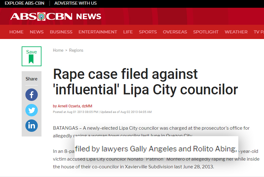 Atty. Angeles is a resource speaker/legal advocate in various television progams and the president of a non-government agency focusing on transparency and good governance.